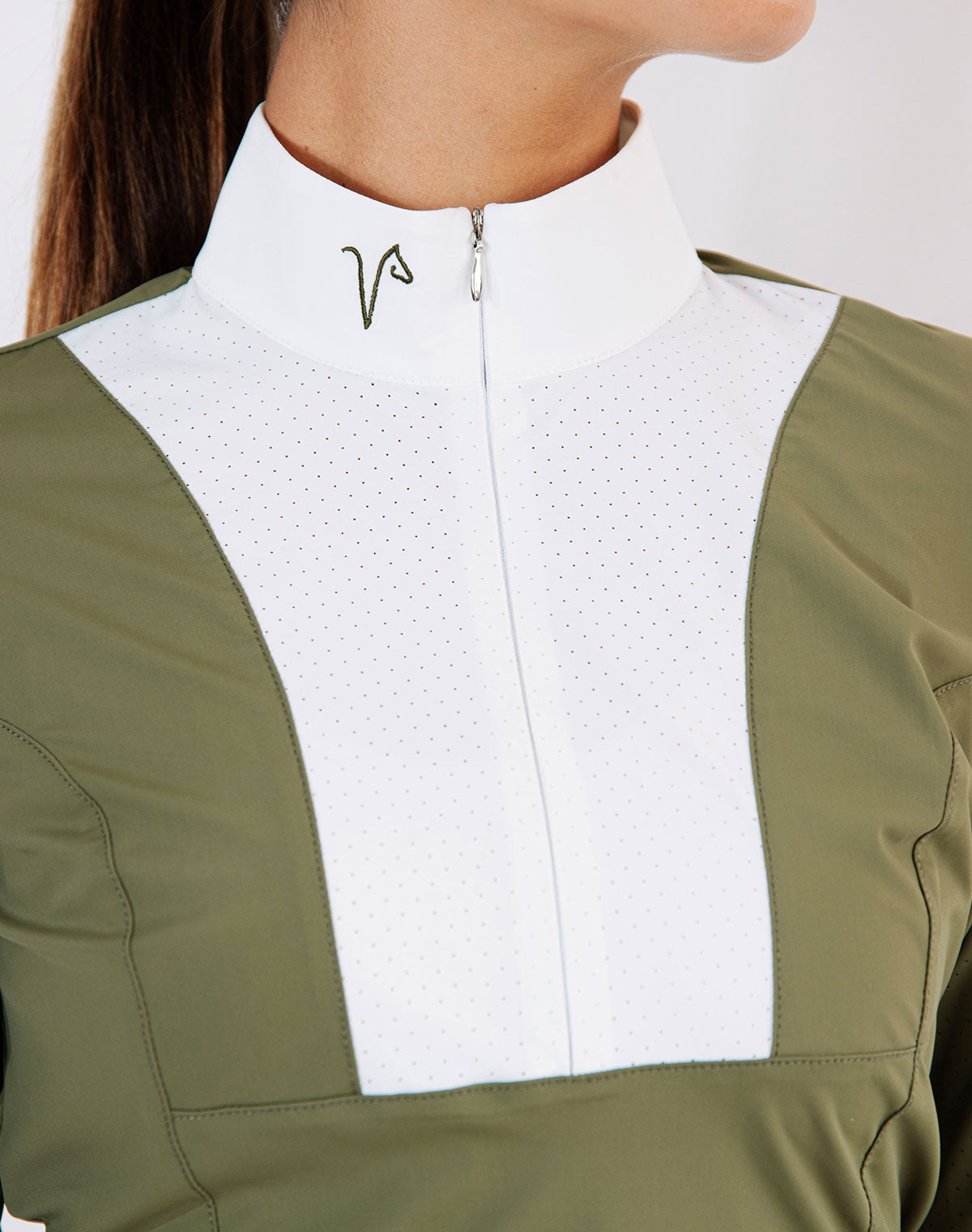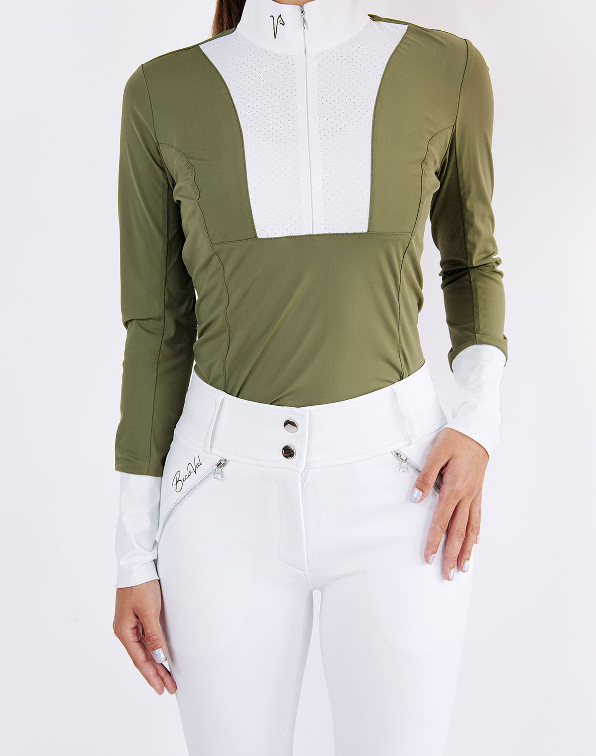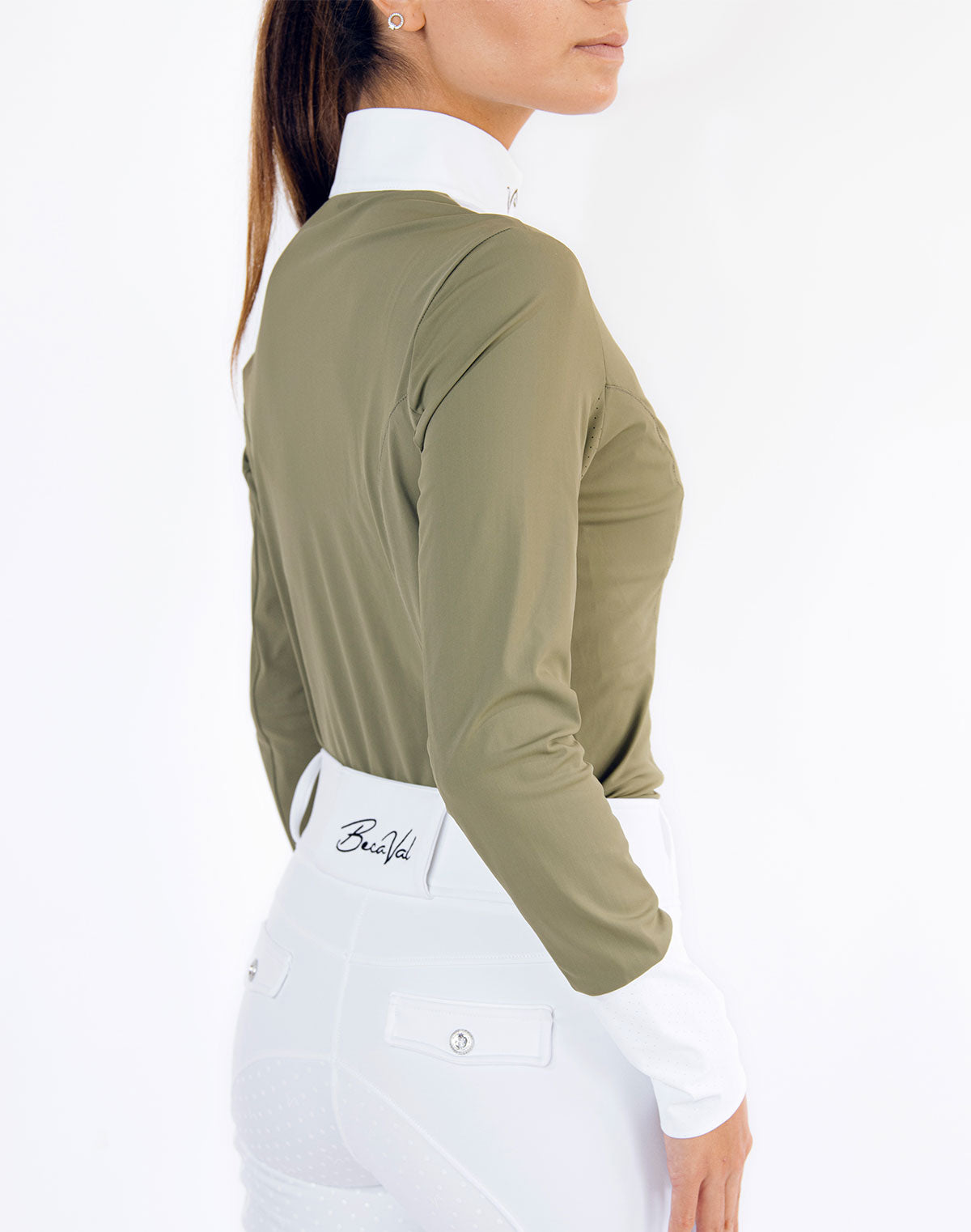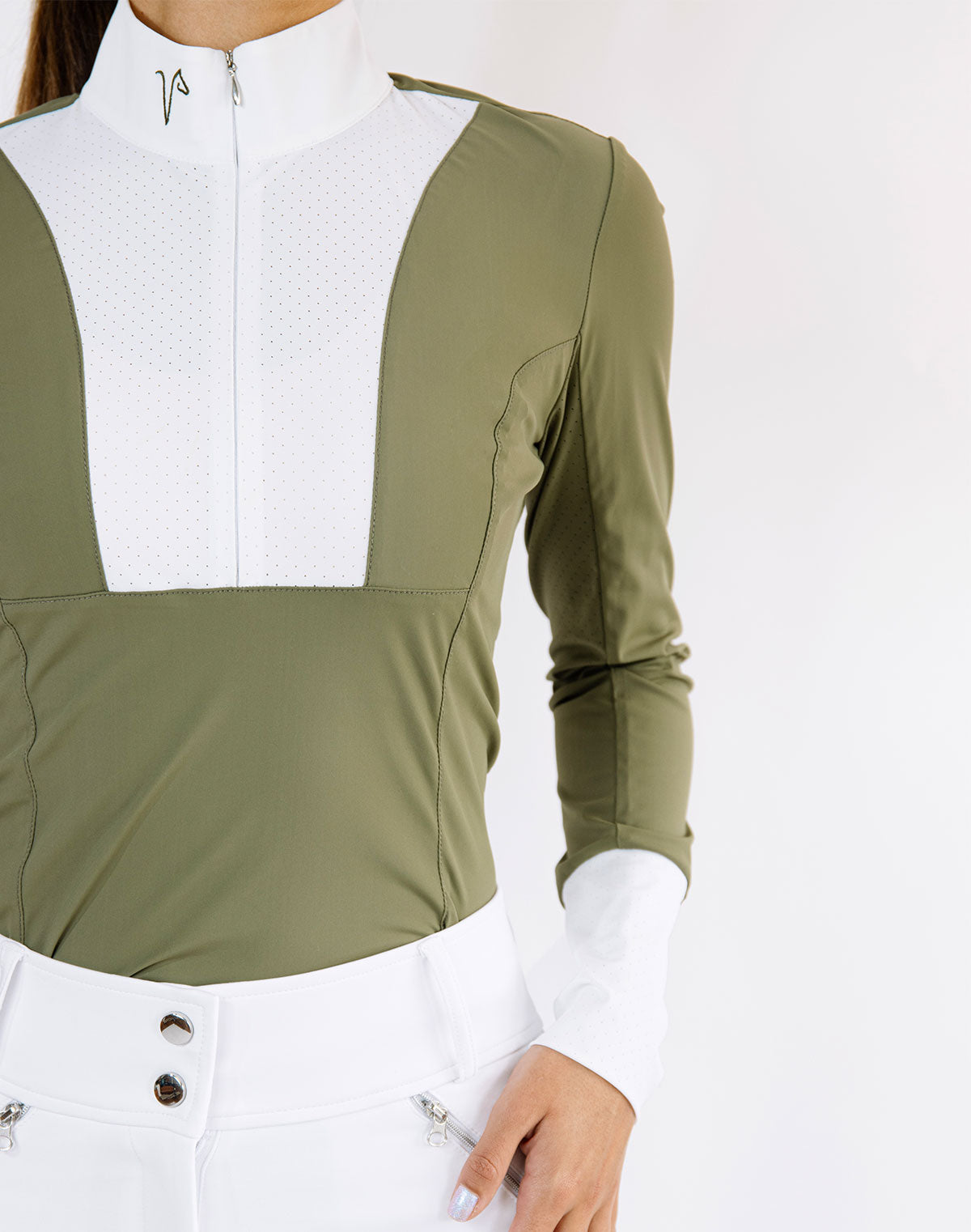 Prepare to steal the spotlight in the arena, a harmonious blend of style, comfort, and performance. Crafted for the discerning equestrian, this show shirt embodies the essence of elegance in motion.